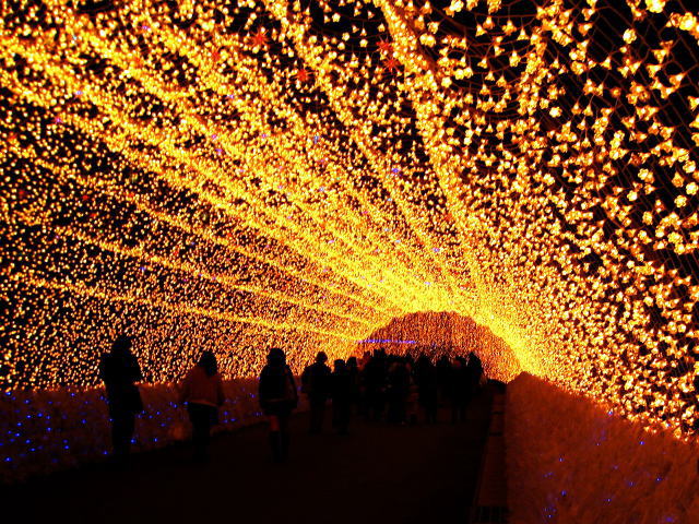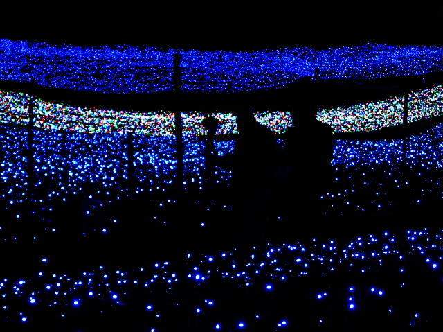 何よりの極めつけなばなの里のナイトイルミネーション。3月までの期間限定のイベントだそうですが、目も眩むような光のトンネルを抜けると広がる幻想的な青い光の海、どれも想像を超える美しさで、見とれているうちに寒さも、時間も忘れてしまうほど。気が付けば集合時間が迫ってきています。