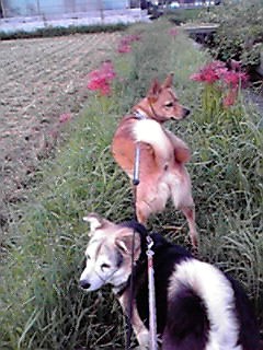 階段の下ではしびれをきらしたグゥがひゃんひゃん啼きはじめました。こうなるともう他の家族への安眠妨害。慌てて着替えて2匹を連れて表にでました。